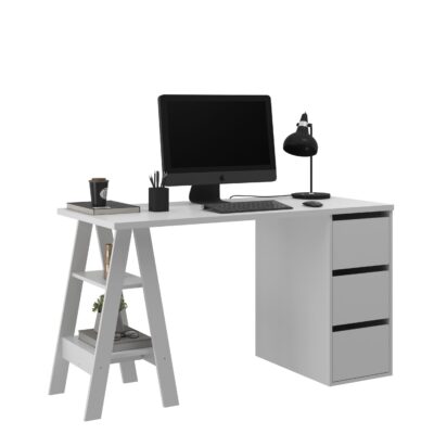 Escritorio Madera 3 Cajones Estantería Oficina Mesa De Pc