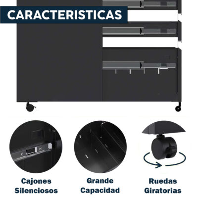 Fabricado en acero de alta calidad, este archivero está diseñado para soportar el uso intensivo. Su estructura sólida evita deformaciones, mientras que los cajones mantienen un deslizamiento firme y estable gracias a sus rieles metálicos.