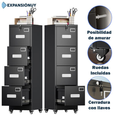 Archivero Metálico 4 Cajones con Llave y Ruedas – Seguridad y Máxima Organización