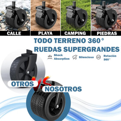 Ruedas anchas de tanque: 9 cm de grosor, ideales para todo tipo de terreno