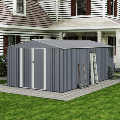 ESTRUCTURA RESISTENTE: Este cobertizo para herramientas está hecho de acero galvanizado, resistente a la intemperie y al óxido, para garantizar una larga vida útil.
