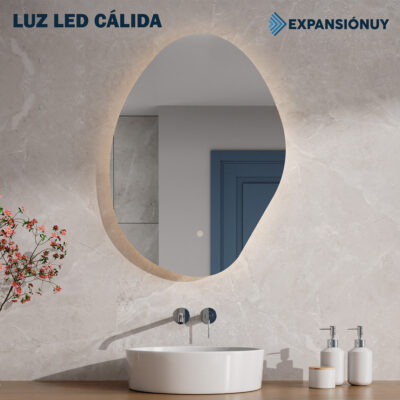 Dale un toque moderno y elegante a tu baño con este espejo LED de diseño irregular. Su iluminación integrada permite elegir entre luz cálida o fría, ideal para adaptarse a diferentes momentos del día. Además, cuenta con encendido táctil y materiales de alta calidad que garantizan durabilidad y seguridad.