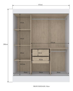 Ropero Armario Placard 3 Puertas Corredizas 2 Cajones