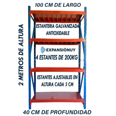 Estanteria Rack Metalico Fácil Encastre 2×1×0.4m 800kg