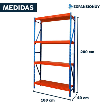 Estanteria Rack Metálico Fácil encastre 2x1x0.4m de 4 niveles 800kg – Alta resistencia y fácil armado
