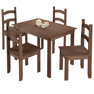 Dale un toque cálido y natural a tu hogar con este conjunto de mesa y sillas en madera maciza. Ideal para comedor, cocina o ambientes pequeños gracias a su diseño compacto y resistente.