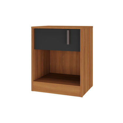 Sumá estilo y practicidad a tu dormitorio con esta mesa de luz de 1 cajón. Su diseño combina madera cálida con un frente en tono oscuro y tirador metálico, ideal para ambientes modernos. El cajón cuenta con correderas metálicas telescópicas, que garantizan una apertura suave, silenciosa y duradera. Además, su estante inferior te brinda espacio extra para organizar lo que necesites.