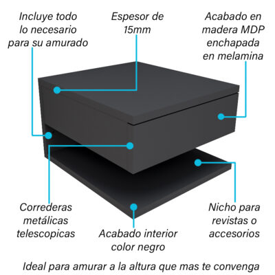 Diseñada para optimizar tu espacio con estilo, esta mesa de luz flotante está fabricada en madera MDP de 15 mm enchapada en melamina, resistente y fácil de limpiar.