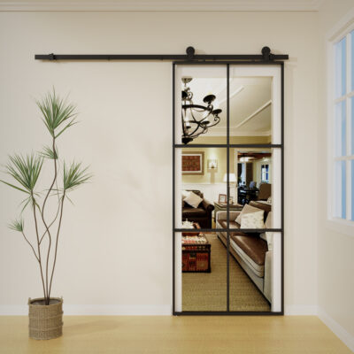 2 valoraciones en Puerta Corrediza Granero Hierro Vidrio Con Riel Kit Completo 160cm