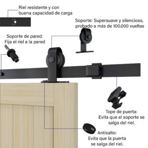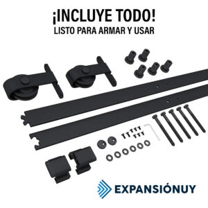 Puerta Corrediza Granero Hierro Vidrio Con Riel Kit Completo 160cm