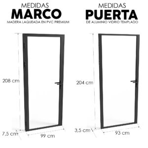 Puerta Interior Vidrio Templado y Marco 99 x 208 2 Paneles