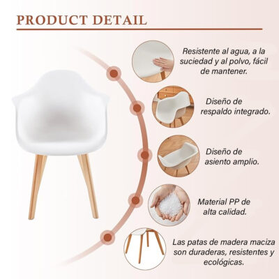 Ideal silla amplia con brazos y asiento de polipropileno, con formas curvilíneas para una mayor comodidad. Patas de madera maciza de haya lacada con un mejor acabado y mayor mantenimiento para más larga durabilidad. Cuenta con complementos funcionales como protecciones de plástico en las patas para proteger tu suelo. Esta silla cumple con garantías de durabilidad y seguridad para que puedas hacer uso de esta silla durante largo tiempo y de forma segura. Ideal para todo tipo de interiores como salones, comedores y salas de reuniones. Se trata de una pieza con un diseño adaptable tanto en tu casa como en tu oficina y exterior.